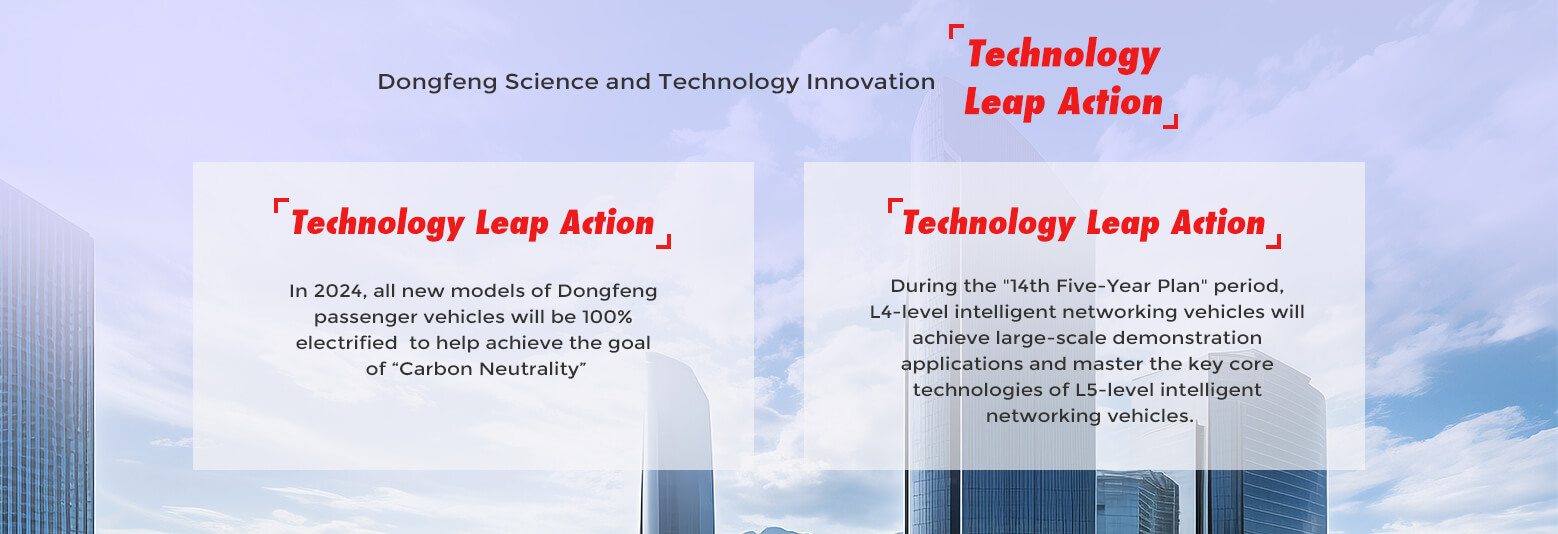 The "Technological Leap" represents the flagship action in technological innovation, symbolizing the revolutionary development of clean energy and intelligent technology. It is the technical force that Dongfeng brings to the automotive industry.