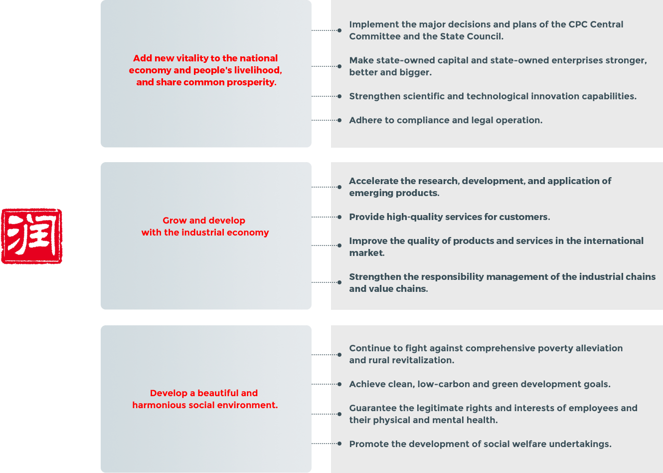 Improve the mechanism and optimize the layout (2021-2022). We will deepen the configuration of the "3+1" support framework and improve the support capacity of social responsibility management. Secondary units shall promote the implementation of the "Nurturing" Plan 3.0 and consolidate the foundation of social responsibility management and practice.